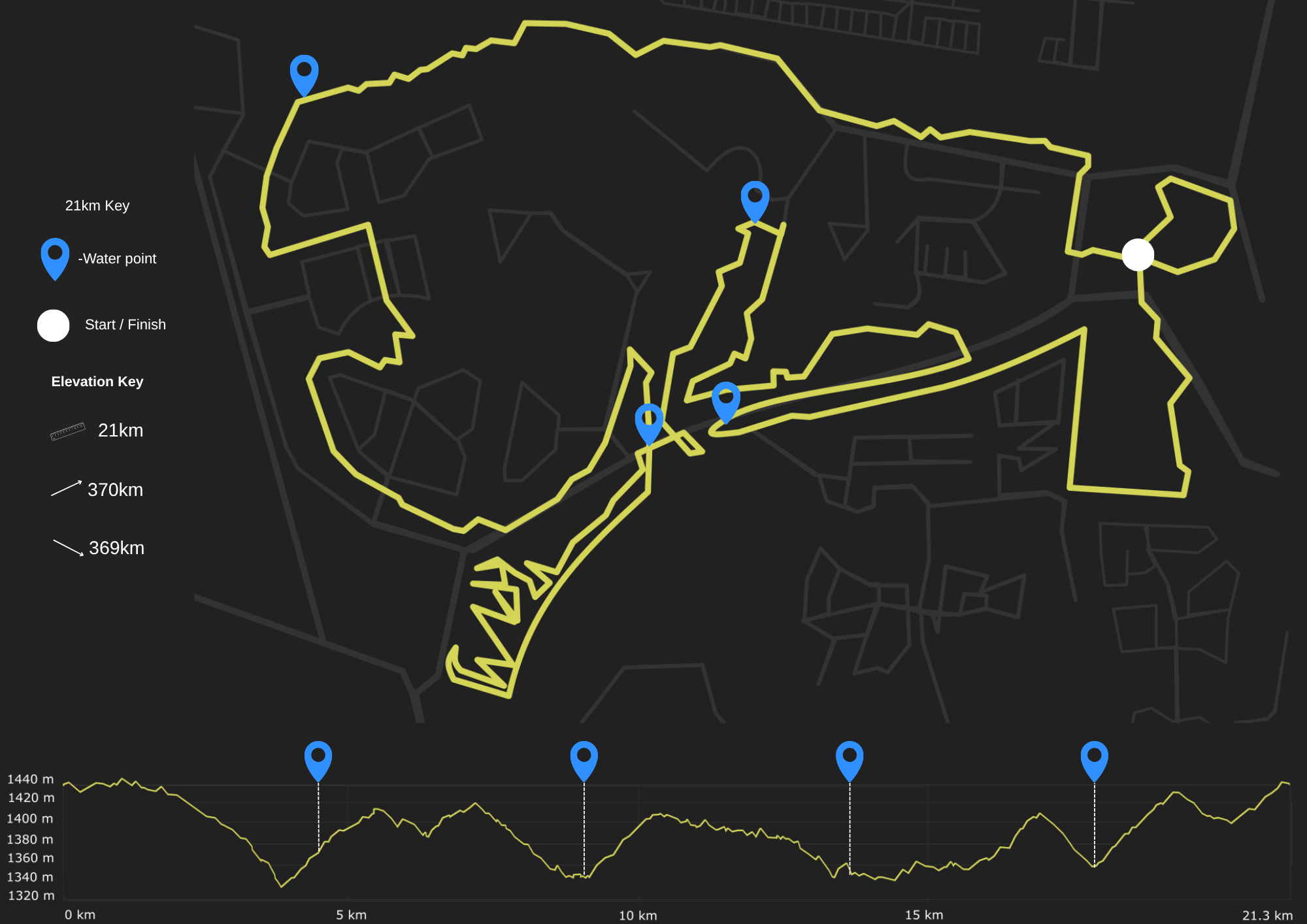 Route profile for the 21KM