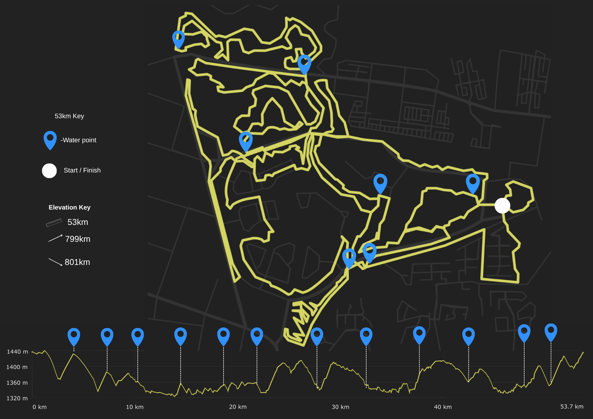Route profile for the 53KM