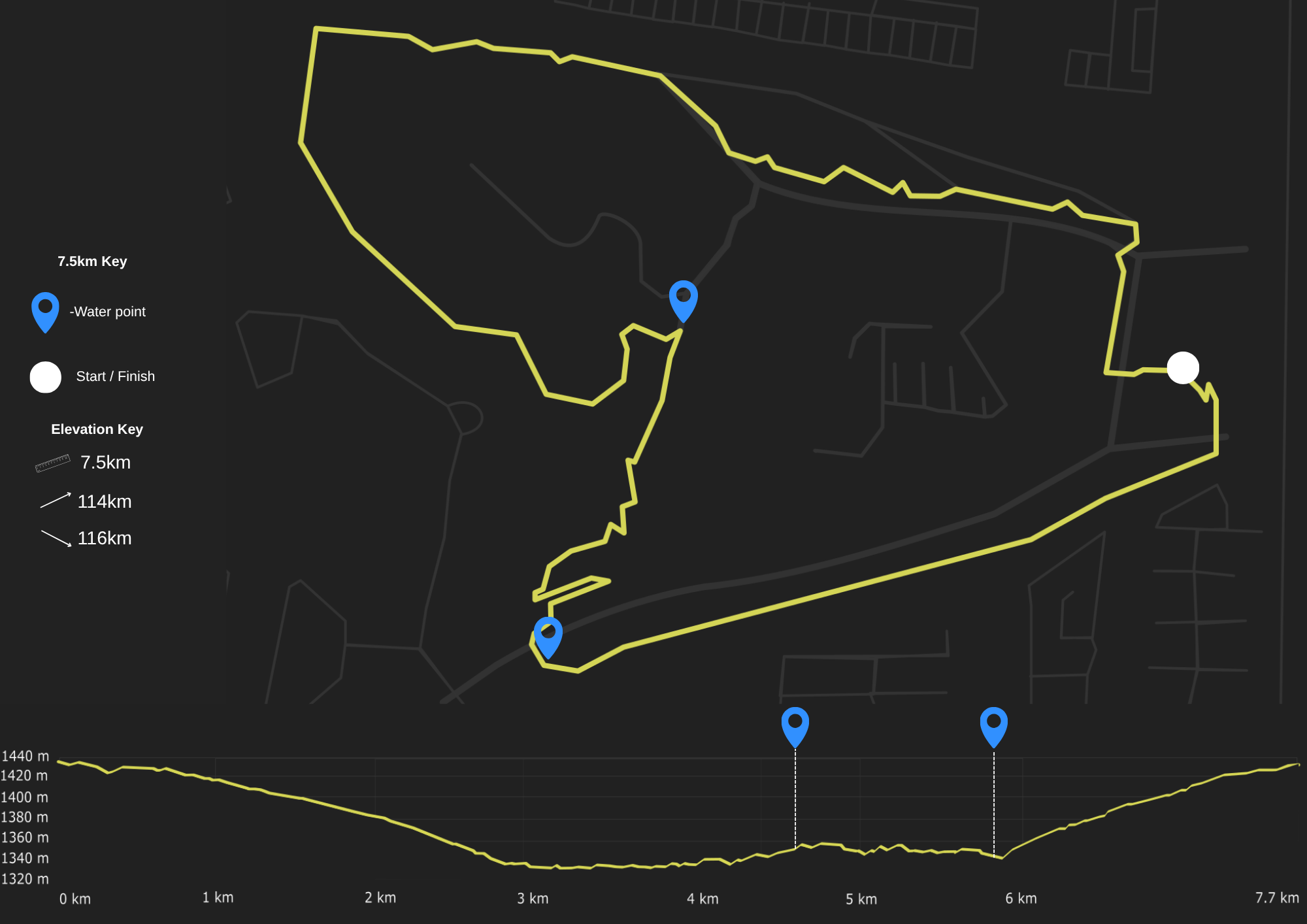 Route profile for the 7.5KM